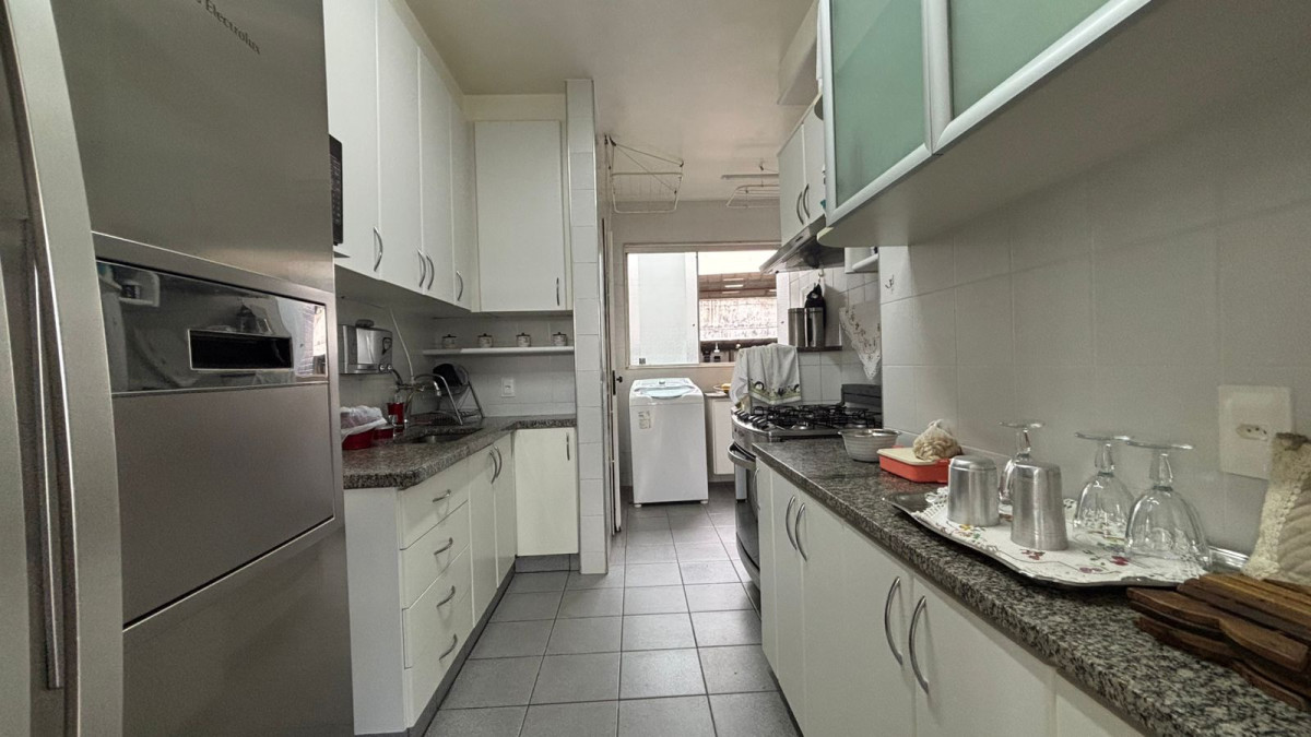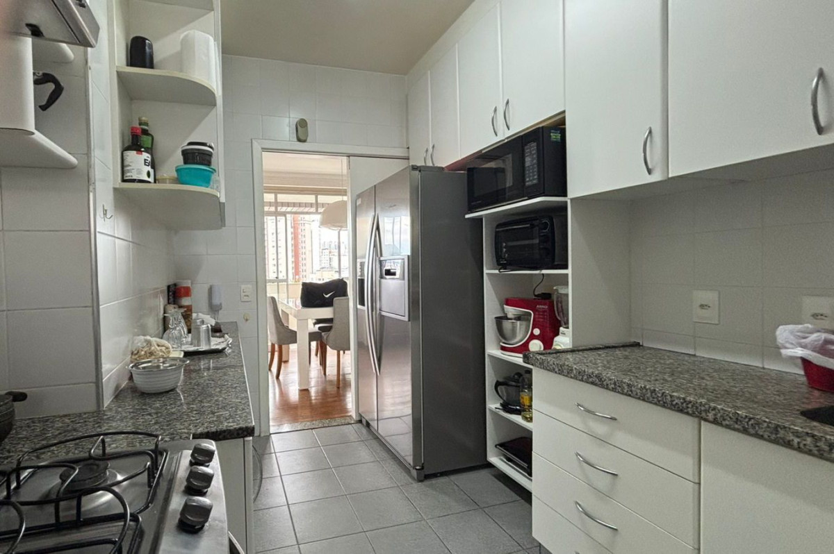 O apartamento possui aproximadamente 167,06 m² e se destaca pelos ambientes amplos, bem iluminados e arejados, além de uma vista definitiva e privilegiada da cidade. A sala para dois ambientes conta com projeto de iluminação e acesso à varanda, que valoriza ainda mais o espaço. São três quartos com armários, sendo uma suíte, além de banho social. A cozinha é funcional, equipada com armários e integrada à área de serviço e à dependência completa de empregada. O imóvel dispõe de duas vagas de garagem e está em condomínio fechado com elevador, salão de festas, sistema de alarme e interfone, oferecendo segurança, conforto e qualidade de vida, além de permitir animais de estimação.